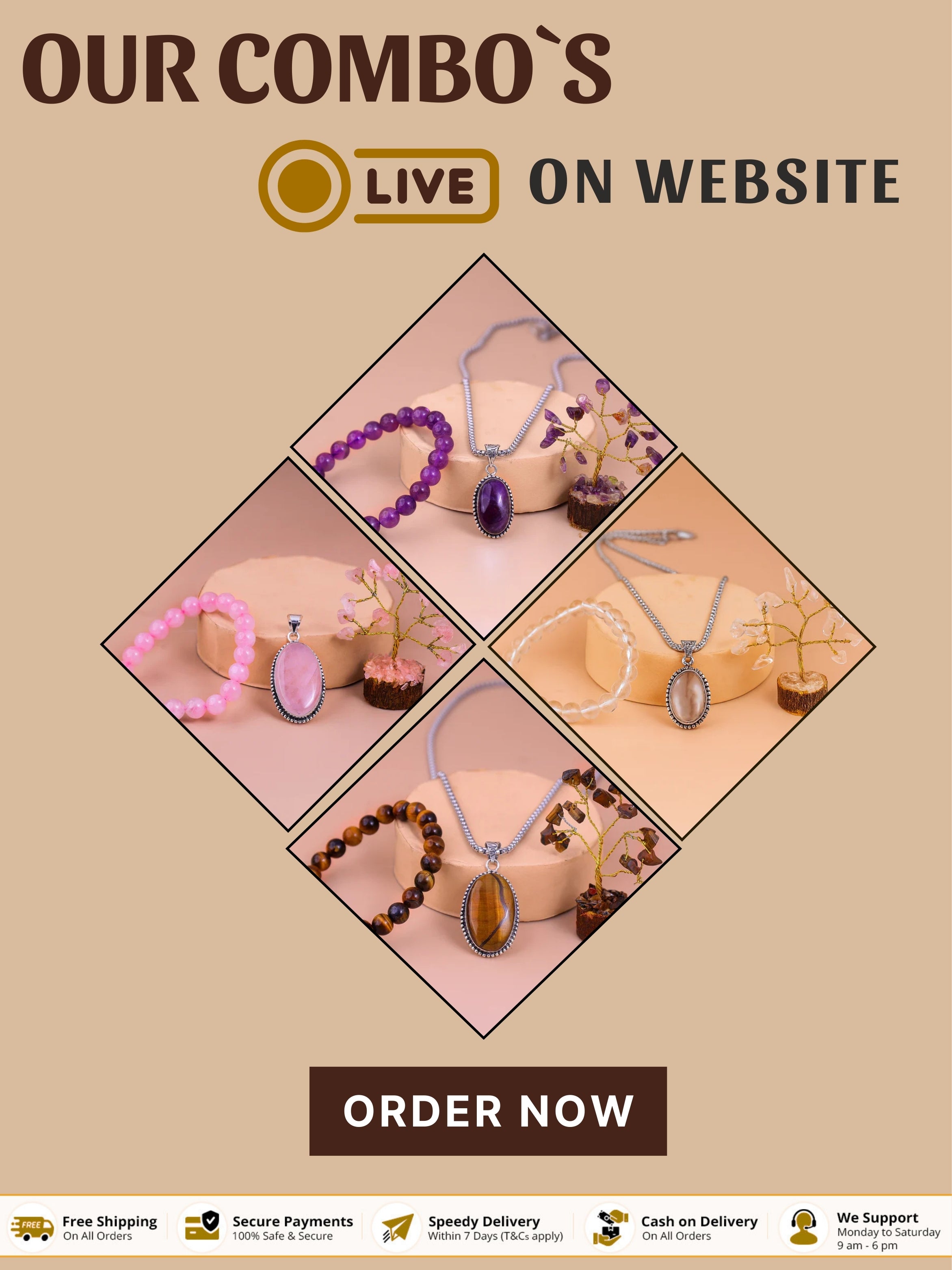 Clear Quartz Bracelet & Pendant with Tree (Combo)